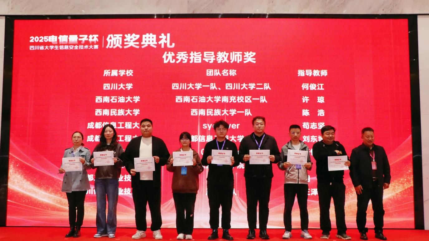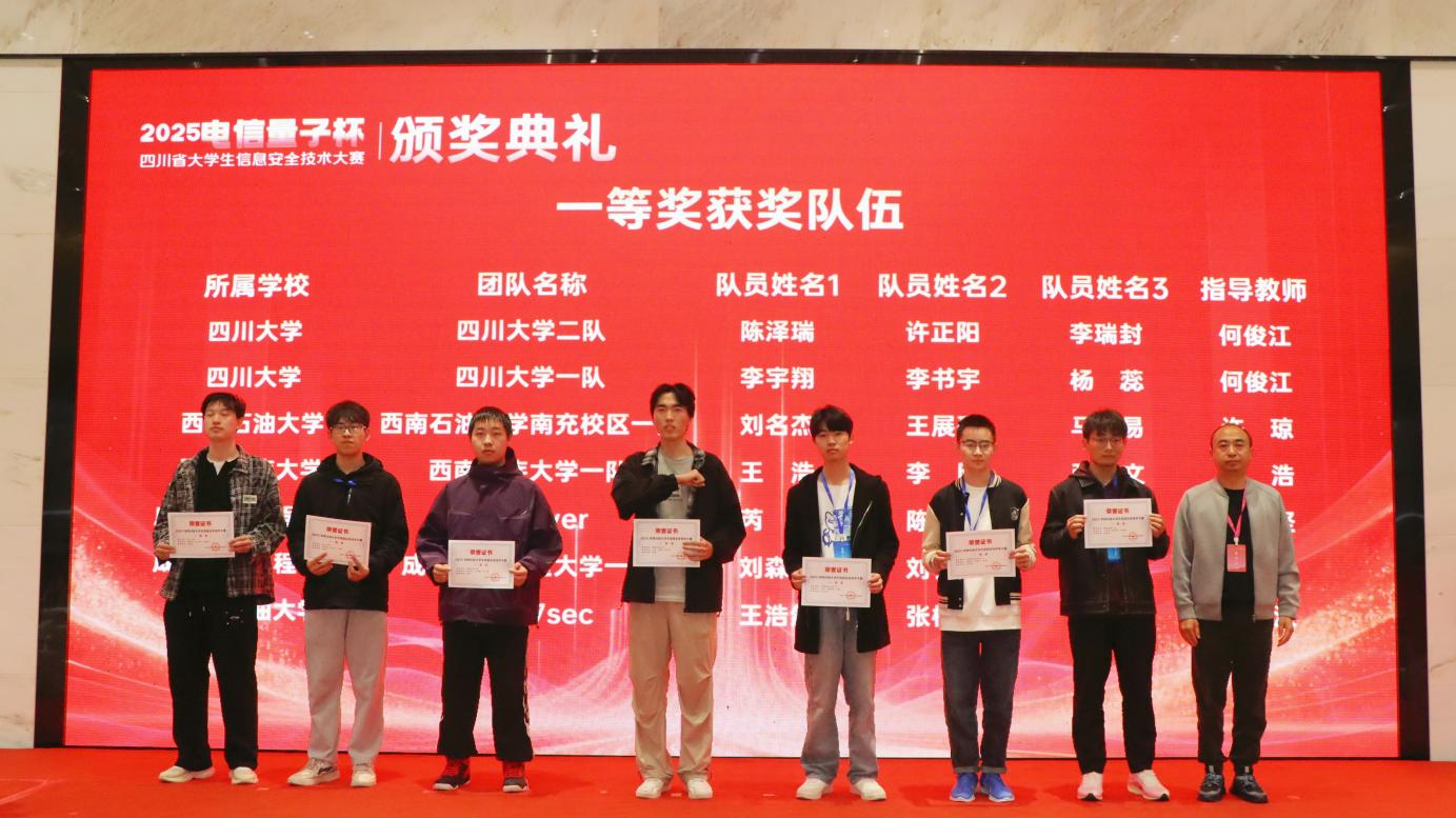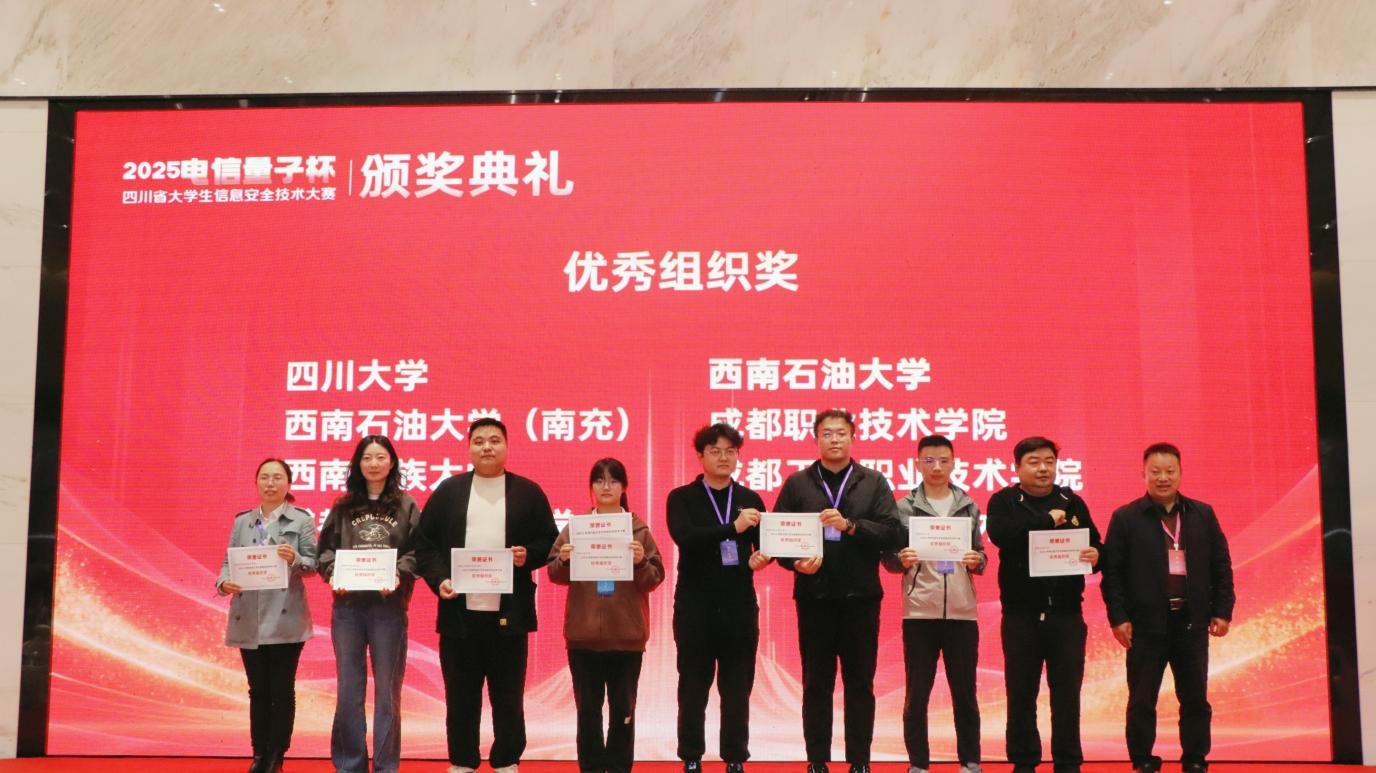 举行。成都信息工程大学副校长舒红平、中共四川省委网信办网络安全处处长魏杰、四川省公安厅反诈中心主任李文德、中国电信股份有限公司双流区分公司副总经理郑宇、南京赛宁信息技术有限公司总经理高庆官、四川省网络空间安全协会副理事长周成龙以及学校相关部门领导和嘉宾出席了本次颁奖典礼。