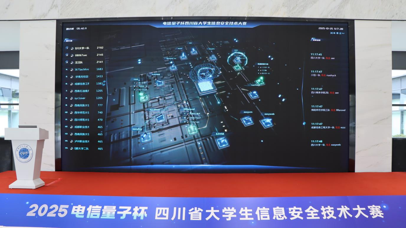 2025年10月25日—26日,“电信量子杯”第十七届四川省大学生信息安全技术大赛在澜谷科创园4—2号楼(成都信息工程大学双流新型产业风月同天
