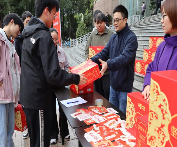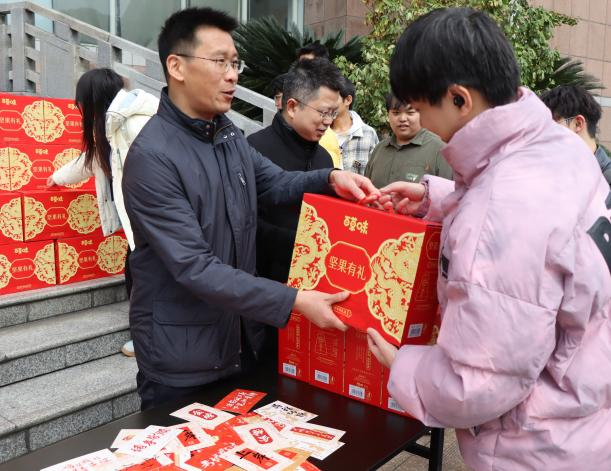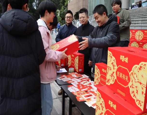 本次送温暖的礼物是一份寓意“坚定初心、坚持到底”的特制坚果礼盒和写有“颗颗坚果攒能量,步步稳扎向梦行”等励志寄语的卡片。这份以“坚”为核心的礼物,既是对同学们备考阶段“补充能量”的暖心关怀,也是对考研学子“坚持就有收获”的美好期许。同学们直言这份关怀让他们倍增信心、更添动力。