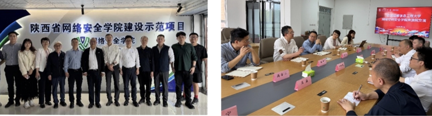 院长周益民带队,副院长何林波、网络空间安全系系主任石磊、网络工程系系主任彭承宗、量子安全密码研究所所长戴维宁、专任教师刘东博副教授、四川省网络空间安全协会副理事长/执行秘书长周成龙等一行7人赴陕西西安参加第七届网络空间安全前沿论坛,并赴西安邮电大学、西安工程大学两所高校实地调研专业建设情况。