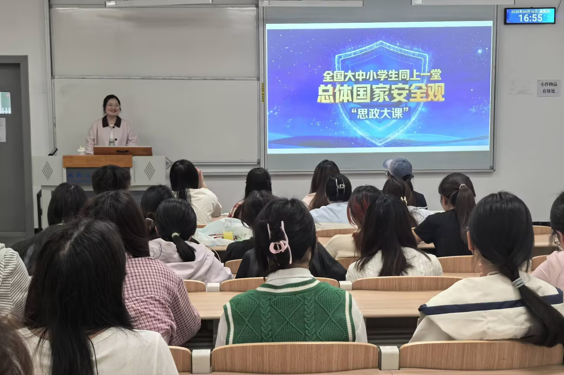 随后,韩阳围绕大学生身心健康成长开展专题教育,引导同学们树立正向、理性的婚恋观与成长观。她着重强调,女生要提升自我保护意识与能力,在人际交往与情感关系中保持独立人格,始终把守护身心健康作为成长的重要前提。 最后,全体参会同学共同观看全国大中小学生同上一堂总体国家安全观“思政大课”。