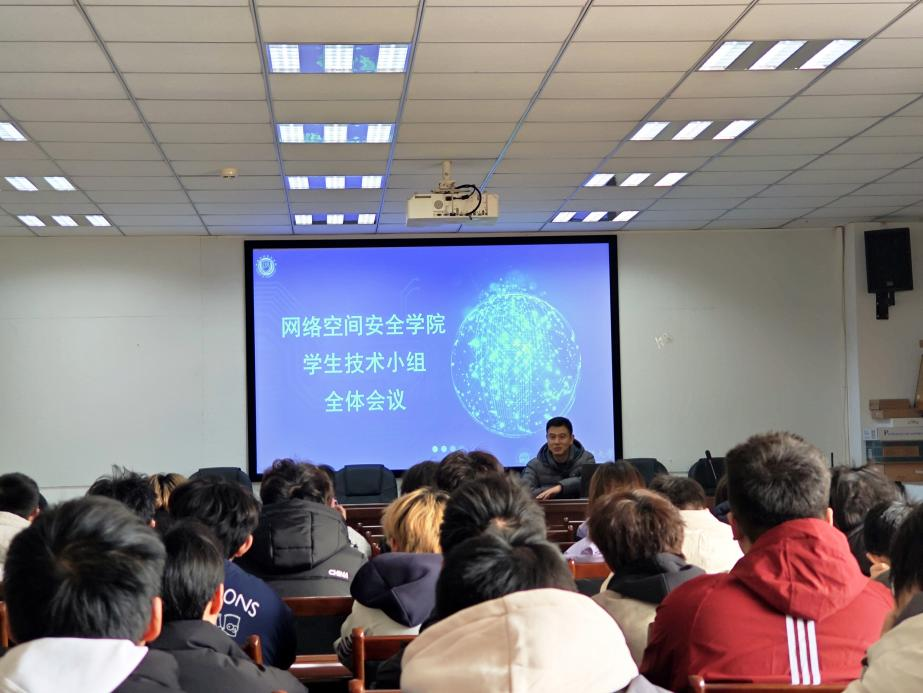竞赛服务中心主任段光明老师、辅导员贾茜老师及学生技术小组全体成员参加会议,会议围绕实验室安全、专业能力提升、竞赛相关规范等核心内容展开部署。