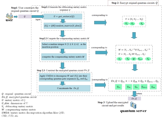 论文针对量子联邦学习(QFL)中用户隐私保护与量子资源受限的双重挑战,创新性地提出了量子电路随机重构同态加密算法(QCRRA)。该方法通过随机混淆酉矩阵序列生成无限密文空间,结合补偿酉矩阵分解技术,实现了对量子计算过程的全同态加密保护。研究团队设计了基于QCRRA的量子联邦学习框架,允许纯经典计算能力的用户通过第三方量子云安全参与模型训练。实验结果表明,QCRRA在保证模型精度的同时,显著降低了通信成本,并展现出极强的抗攻击能力。该研究为量子机器学习的安全部署提供了新思路,对推动隐私保护的分布式量子计算发展具有重要意义。